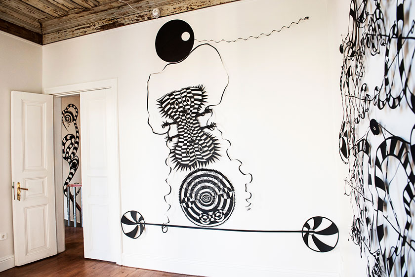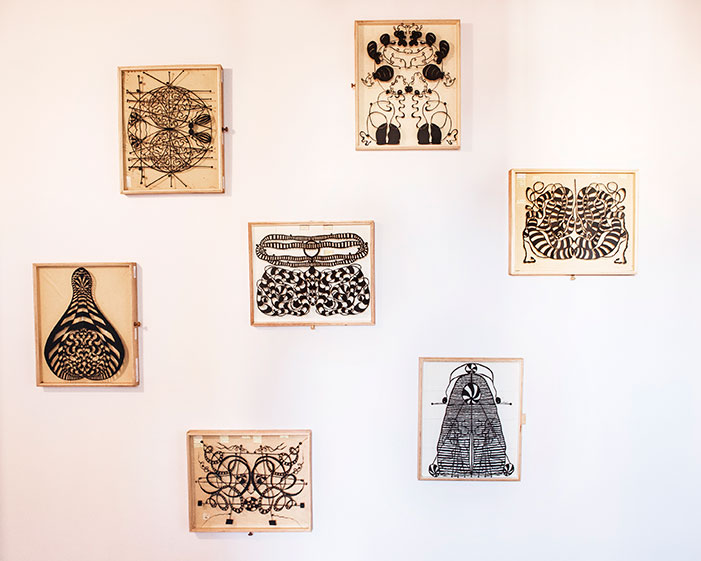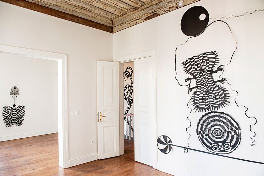 Previous Next Expansions in Black - from The Paper Diaries 2015 Istanbul Turkey 2015 An installation of black paper sculptures ranging from small boxed forms of circa 40cm x 50cm to large free hanging wall sculptures over 2meters wide and 3 meters in height.